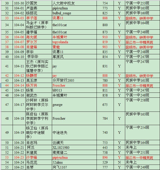 163-03 ---103-19 ----李瑞玺------人大附中校友-----820 -----宁蒗一中247班