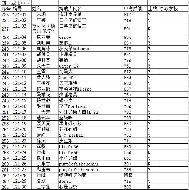 本人peacemaker,曾捐助新营盘中学初一59班学生肖国芳(131-23号),很高兴她中考上线,我愿续捐!