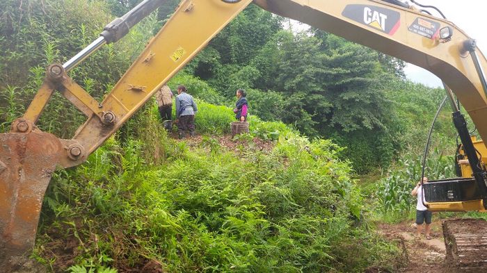 施工中,我们专门安排2个人负责安全,其实,修路蛮危险的,经常会发生工伤的。李家山村民们很高兴,老围着挖掘机转,一天天看修路的进度,其实,这样会耽误施工进度的,不过,大家都很高兴,看就看吧,慢点也值得。