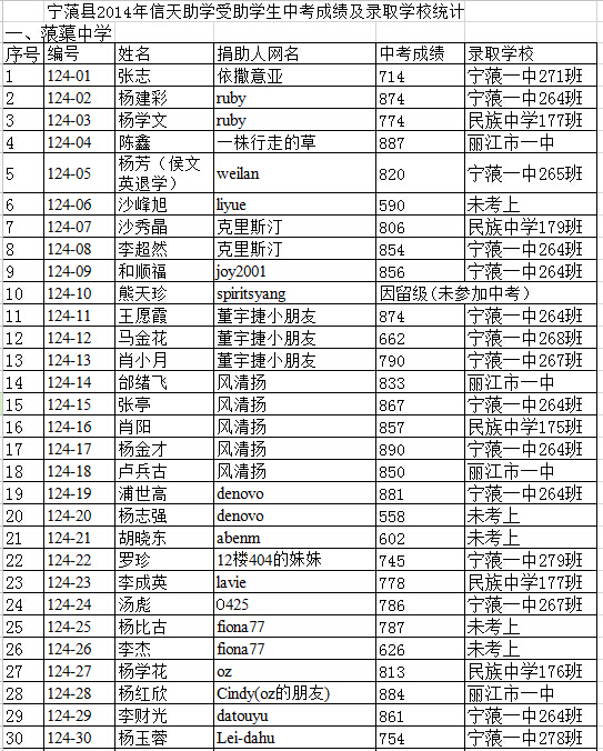 » 2014年受助初中生毕业中考录取学校情况(2014年8月27日更新)