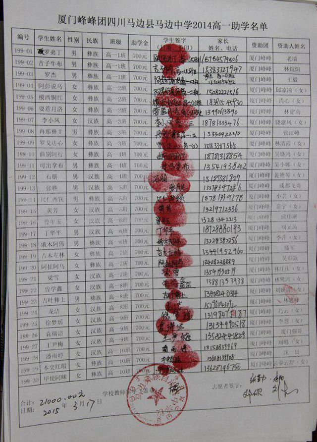 标题: 第199批受助生名单(马边一中30名, 厦门峰峰团捐)