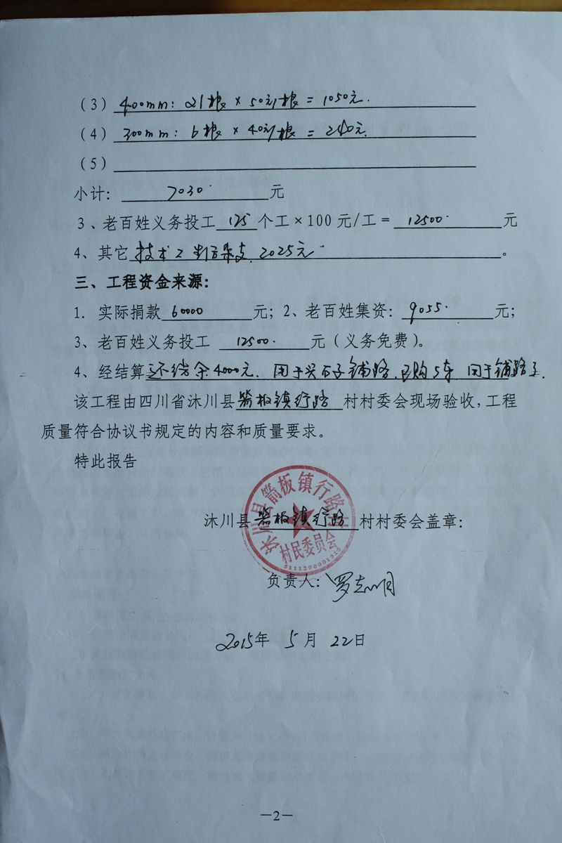 (5)修路预算分好几部分,有挖掘机、涵管、炸药爆破(山崖需要爆破)、堡坎、村民义务工、征地等。修路,我们不全包,我们出一大部分钱:挖掘费用、山崖爆破等。村民出义务工、涵管、征地费、村民小额集资。