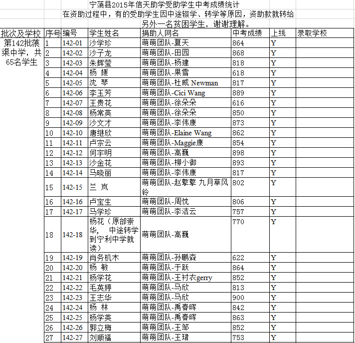 2015年信天助学初中生毕业中考成绩(2015年7月18日更新)