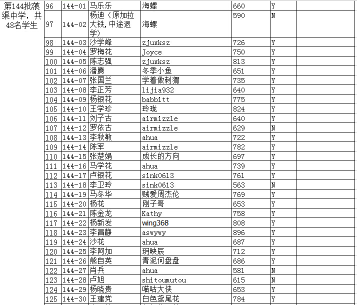 共有以下几批:第142批、143批、144批、145批、146批、147批、148批、149批、150批、151批、152批、153批、157批、158批、159批、160批共16批,初中毕业生一共646名。