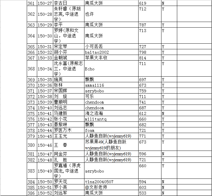 浦老师现在还没有拿到录取分班的学生名单。等浦老师收到后,我们就会发布,谢谢。