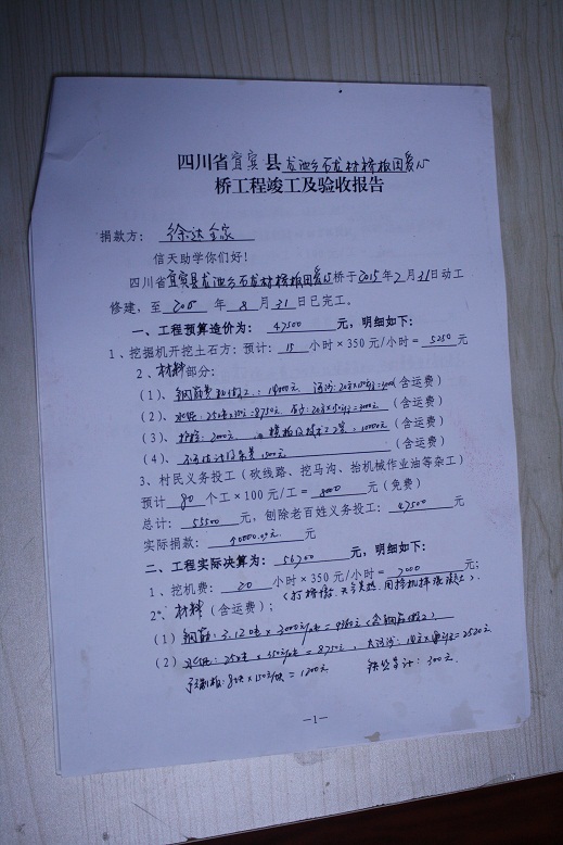 标题: 35座桥:四川省宜宾县龙池乡桥板田爱心桥(徐达捐)