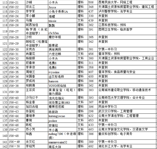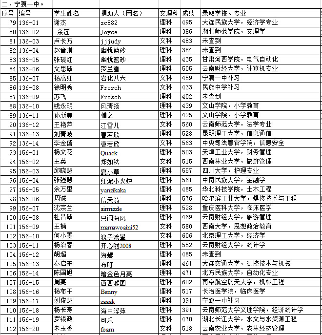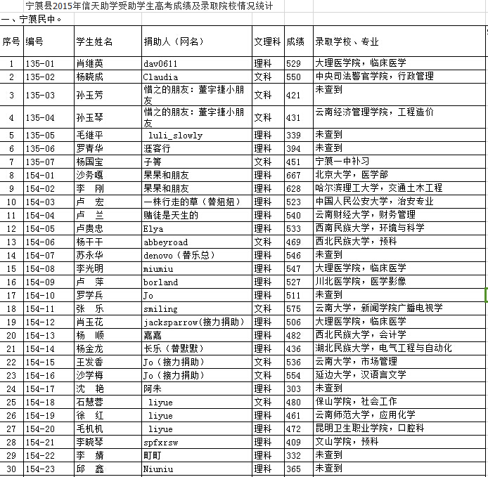 宁蒗县2015年信天助学高考成绩和录取学校情况