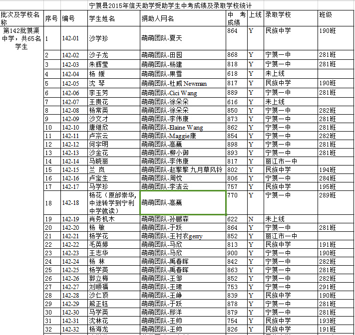 标题: 2015年信天助学初中生毕业中考录取学校情况(2015年9月3日更新)
