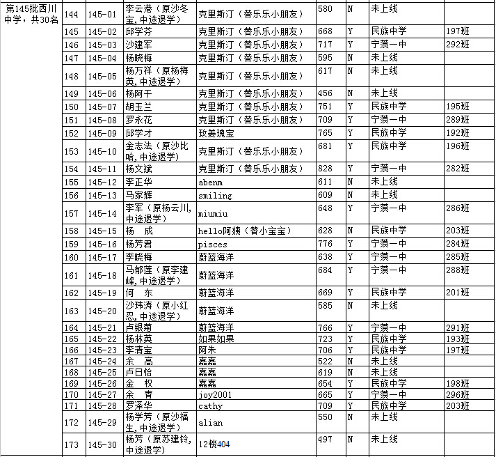 共有以下几批:第142批、143批、144批、145批、146批、147批、148批、149批、150批、151批、152批、153批、157批、158批、159批、160批共16批,初中毕业生一共646名。