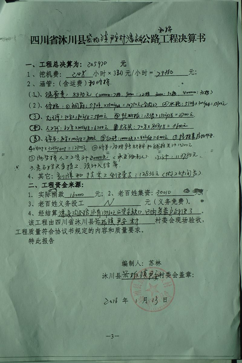潘家沟公路和桥位于四川省沐川县箭板镇尹安村二组,全长约2.6公里,该路和桥直接受益45户,直接受接人数约160人,间接受益人数500人。该路要经过两处大河沟,河沟宽有6~8米,涨水有3米高左右,需修建两座桥。路起点:大河坝,终点A点:潘家沟,长度约1.1公里,B点黄桷树埂,长度约1.5公里。该处原老百姓已用人工挖了约1米宽的小路,用水泥铺了0.8宽的水泥路,上面可以骑摩托车,由于路窄,下雨路滑,前不久有一人骑车,滚下去摔死了。老百姓将投工投劳,并想办法集资30010元。