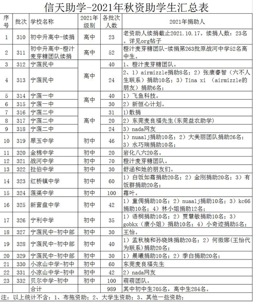 21、东莞益农,20名高中生(原计划150名初中生更改为60个初中生+20名高中生,捐款人:东莞麦良福先生于2021.10.18日付款138000元给立青),10.20日立青转付信天
