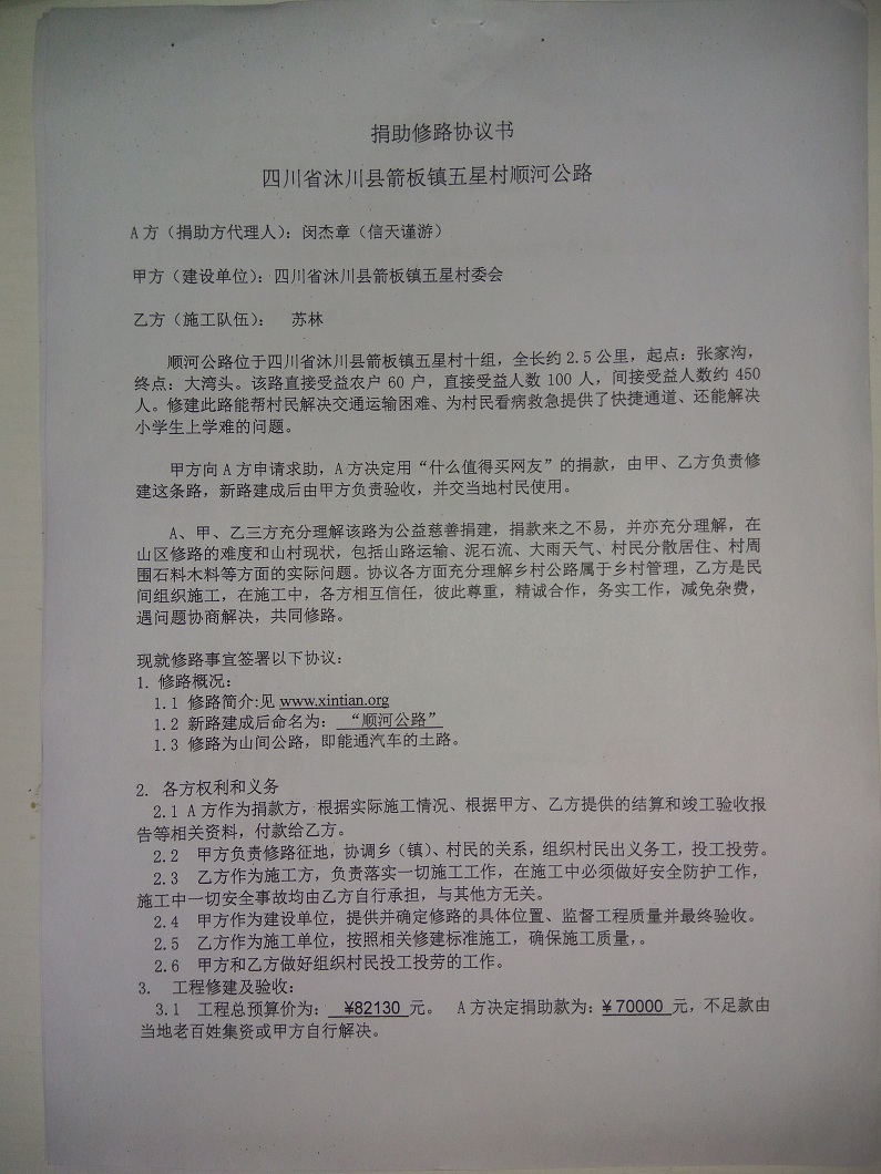 (1)爱心人捐款、村民投工投劳一起修土路;