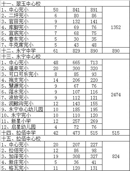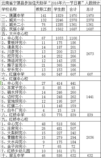 以上总合计:宁蒗县参加2016年六一节日宴会人数为:42028人。