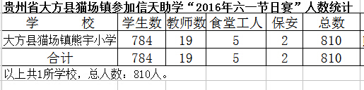 本次约6.2万名师生参加2016年六一节日宴活动,本次活动的前后组织、联络通讯、安排协调、资料调查、打印复印费、走访车费、油费均由参加活动的志愿团队或志愿者个人自行承担,不占用大家的捐款。