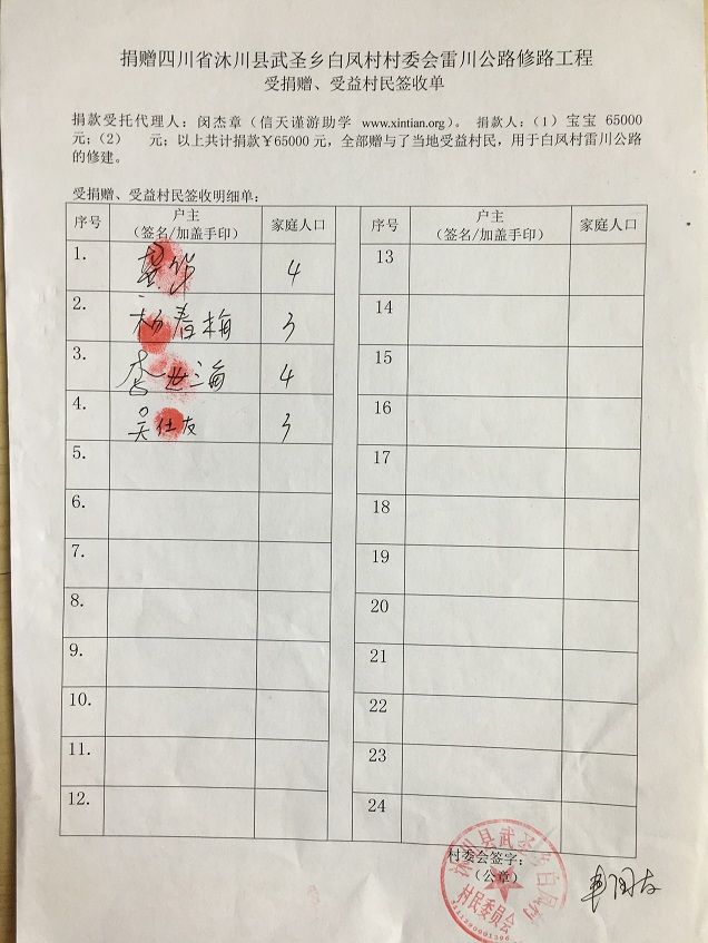(1)爱心人捐款、村民投工投劳一起修土路;