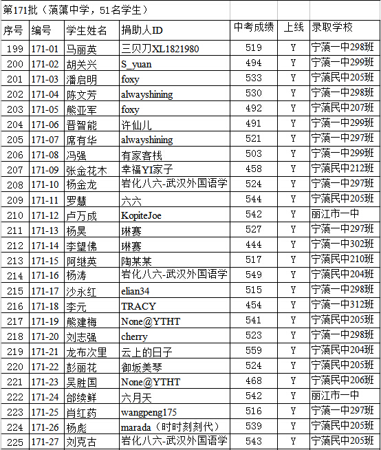 标题: 2016年信天助学初中生毕业中考录取学校情况