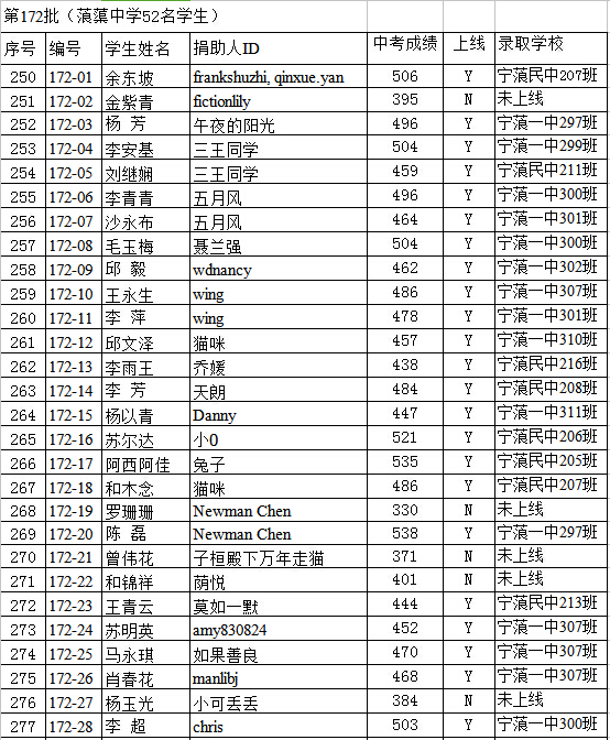 在资助过程中,有的受助生因辍学、转学等原因,资助款就转给另外一名贫困生,谢谢理解。