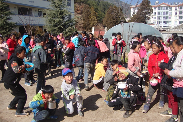 2017年元旦我们给云南、四川贫困山区63所学校约1.4万余名师生送去了一顿香喷喷的节日宴大餐。谢谢大家。
