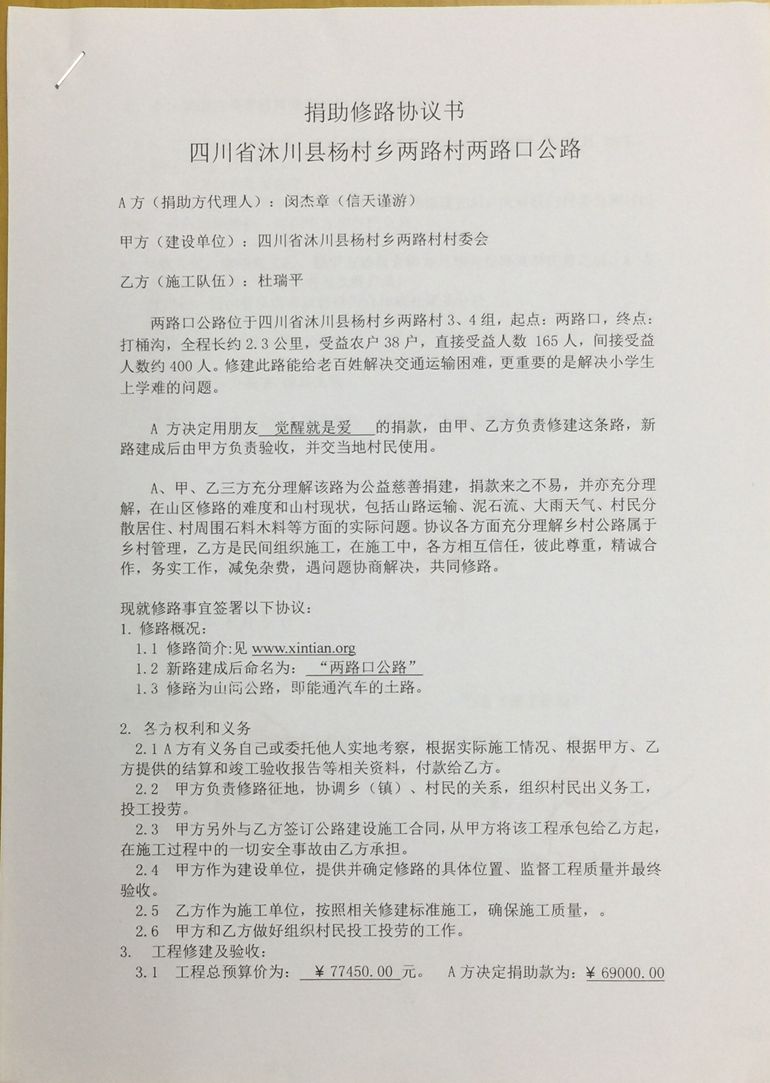 (1)爱心人捐款、村民投工投劳一起修土路;