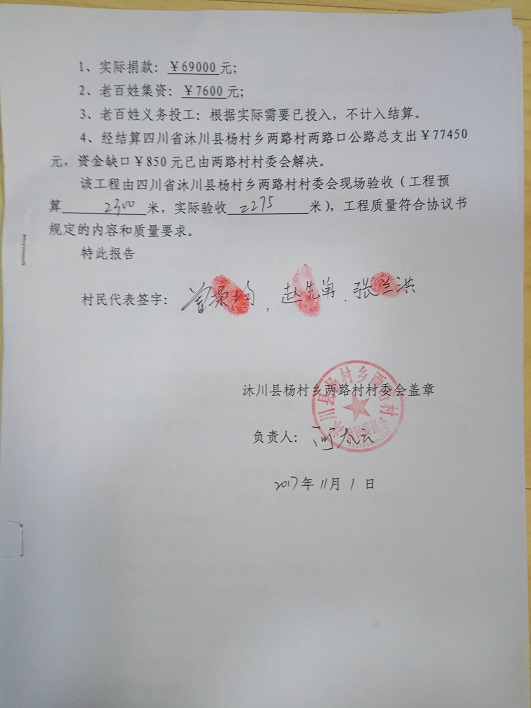 拟捐款:¥69000元,差额¥850元由村委会解决。