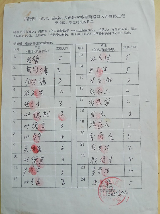 受益群众签字单