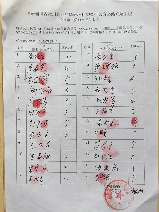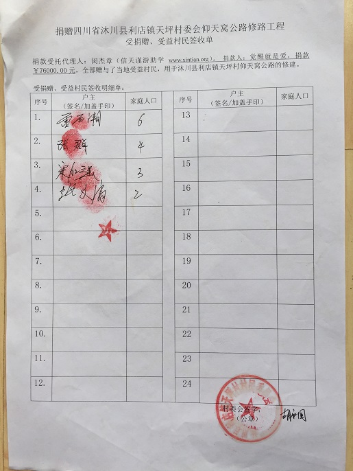 受益村民签字单