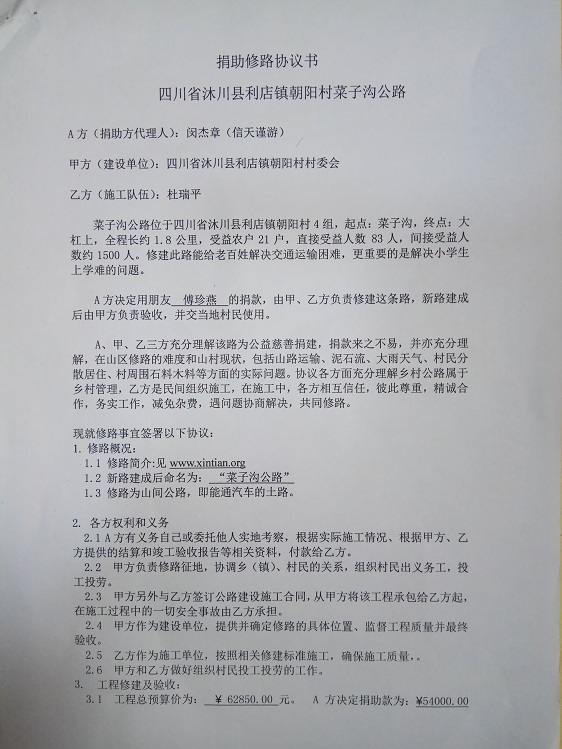 (1)爱心人捐款、村民投工投劳一起修土路;