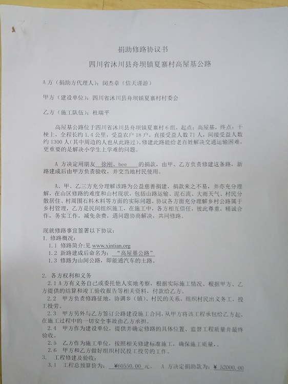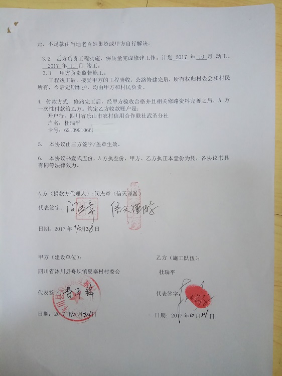(1)爱心人捐款、村民投工投劳一起修土路;