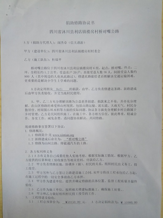 捐助修路协议书