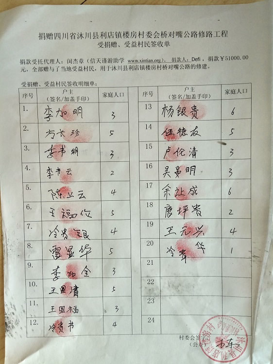受益村民签字单