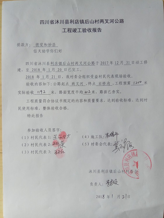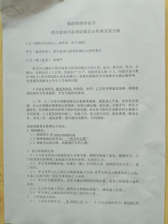 (1)爱心人捐款、村民投工投劳一起修土路;