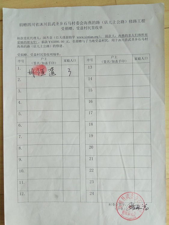 这样,村民自助、社会捐助、政府帮助三方力量都结合起来,循序渐进,相信明天更美好。