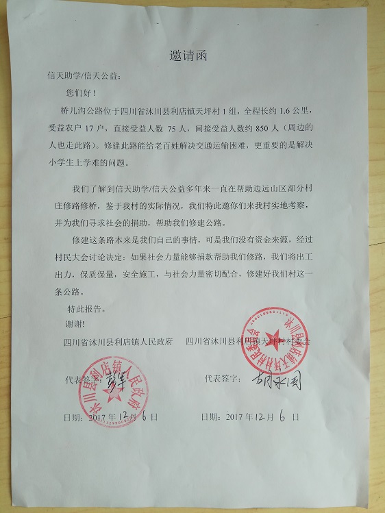 桥儿沟公路位于四川省沐川县利店镇天坪村1组,全长约1.6公里,起点:母猪石,终点:桥儿沟,受益农户17户,直接受益人数75人,间接受益约850人。此路能给老百姓解决交通运输困难,更重要的是解决小学生上学难的问题。村民修路决心很大,全力集资,400元/户,共集资6800元,计划修通土路、支路、涵管、并铺设部份路面块石,力争雨季也能通车。