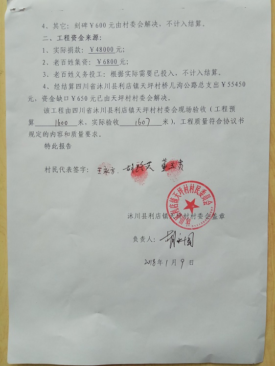 拟捐款:¥48000元,不足的由村委会自行解决。