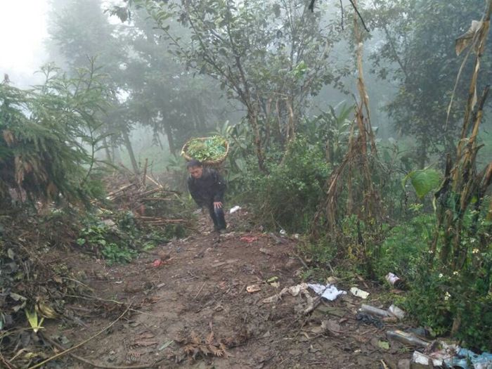 村民肩扛背驮,生活困难。