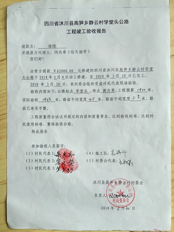 (1)爱心人捐款、村民投工投劳一起修土路,干季可以通车;