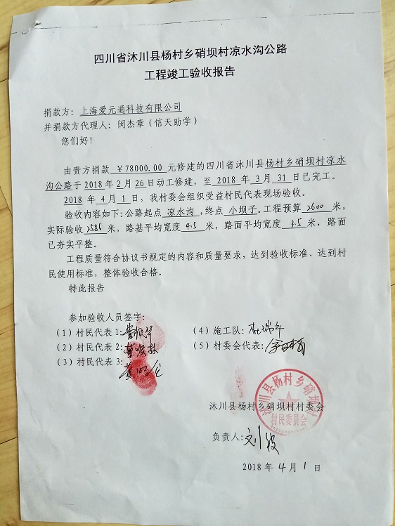 第171条:四川省沐川县杨村乡硝坝村12组凉水沟公路(上海爱元)