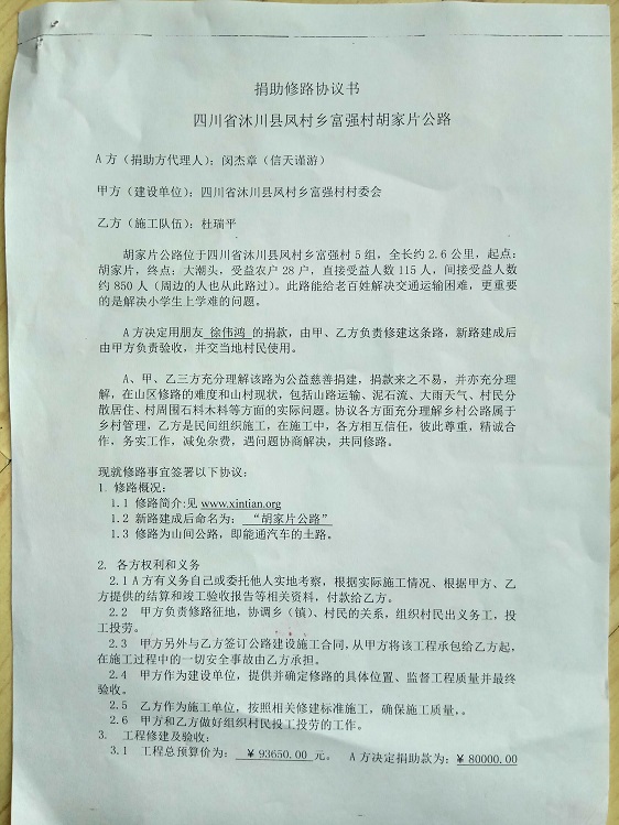 (1)爱心人捐款、村民投工投劳一起修土路,干季可以通车;