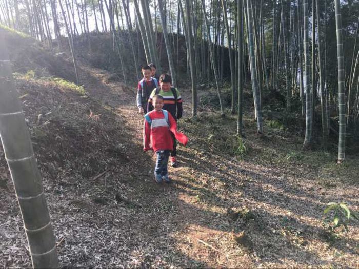 小学生上学之路,等修好了路之后,就可以坐拖拉机上学了,或者骑自行车上学了