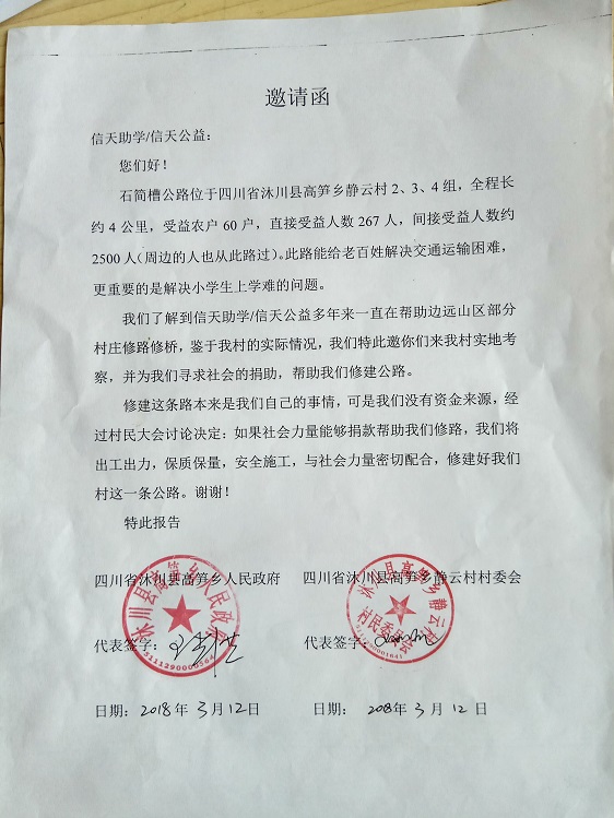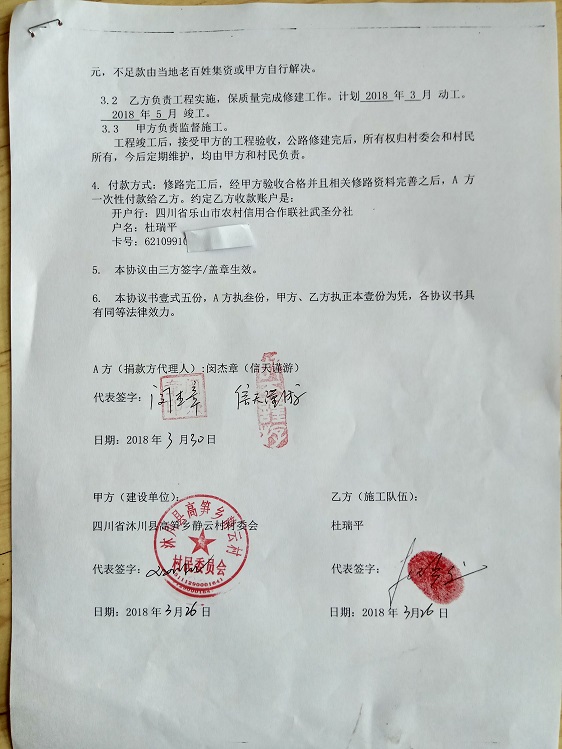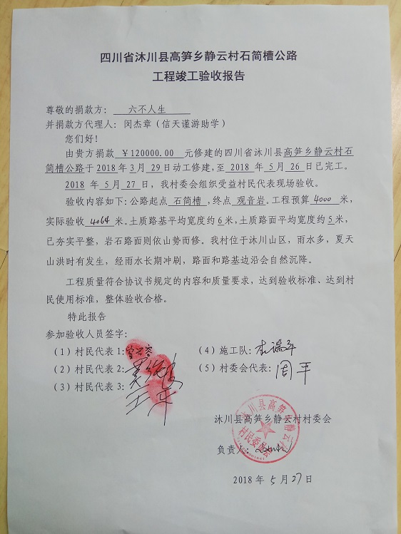 (1)爱心人捐款、村民投工投劳一起修土路,干季可以通车;