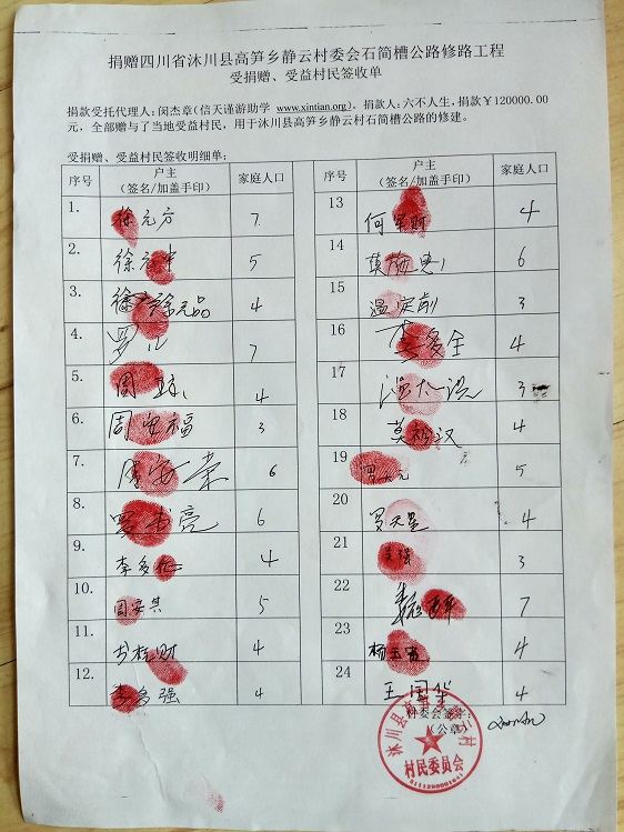 这样,村民自助、社会捐助、政府帮助三方力量都结合起来,循序渐进,相信明天更美好。