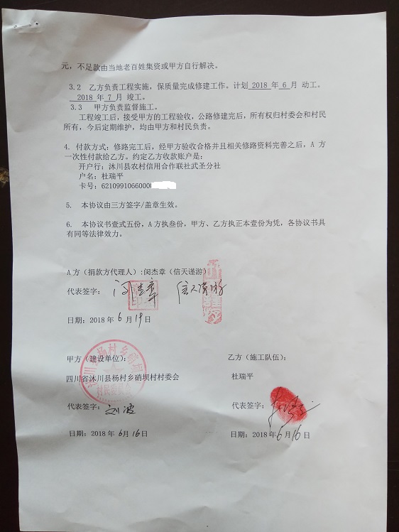 (1)爱心人捐款、村民投工投劳一起修土路,干季可以通车;