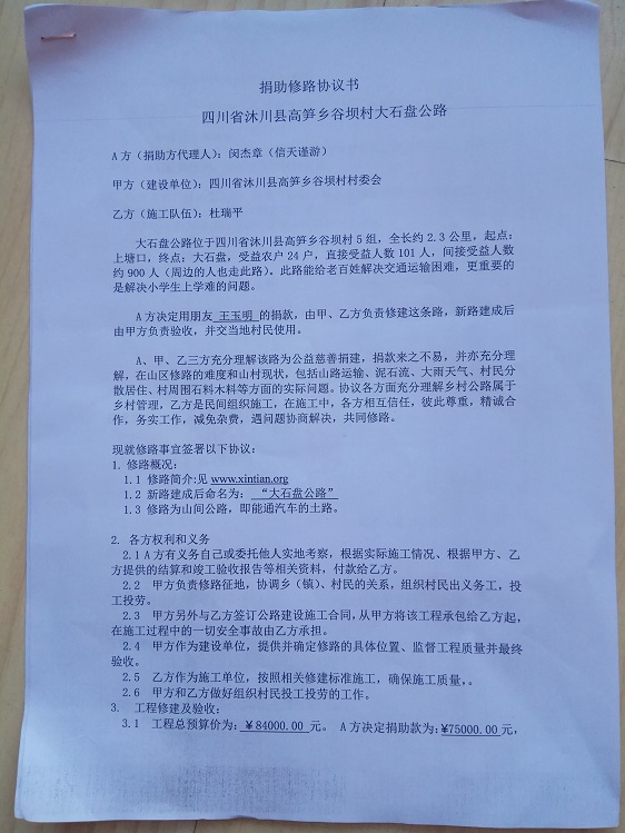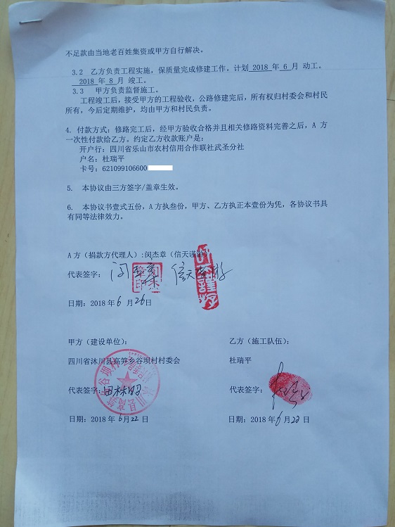 (1)爱心人捐款、村民投工投劳一起修土路,干季可以通车;