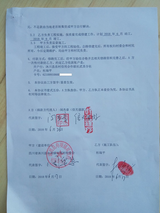 (1)爱心人捐款、村民投工投劳一起修土路,干季可以通车;