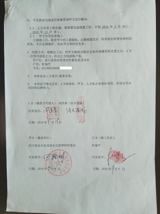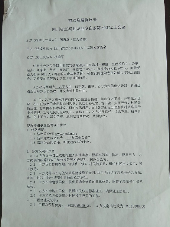 捐助修路协议书