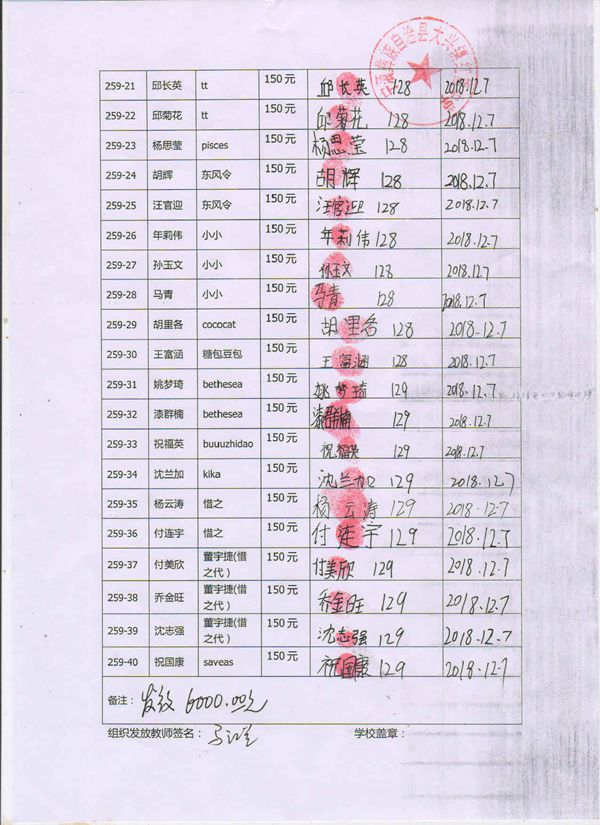 2、每名学生的资助款为900元/人,2018年9月----2021年7月,共六个学期,一个学期150元。