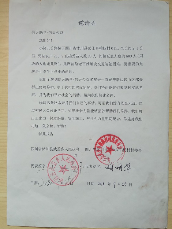(1)爱心人捐款、村民投工投劳一起修土路,干季可以通车;