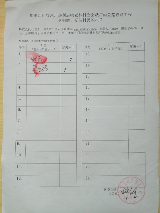 (1)爱心人捐款、村民投工投劳一起修土路,干季可以通车;