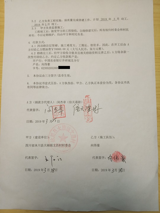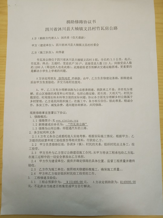 捐助修路协议书
