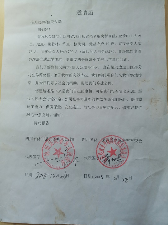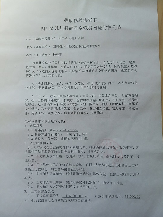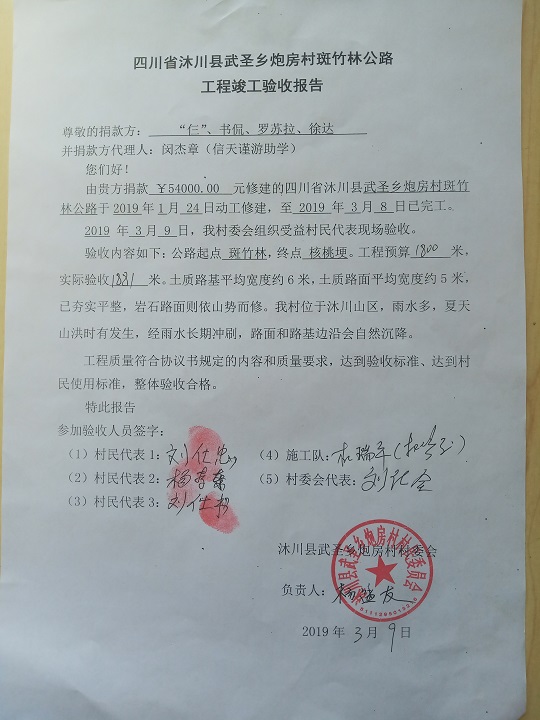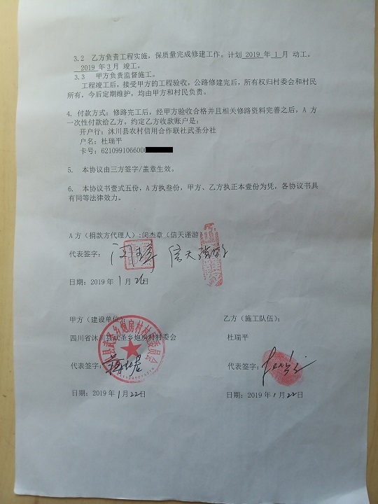 (1)爱心人捐款、村民投工投劳一起修土路,干季可以通车;
